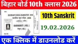 बिहार विद्यालय परीक्षा समिति(BSEB) के द्वारा मैट्रिक की वार्षिक परीक्षा 17 फरवरी से 25 फरवरी के बीच फाइनल बोर्ड परीक्षा चलने वाला है, मैट्रीक संस्कृत की परीक्षा 19 फरवरी 2026 के दिन आयोजित होने वाला है | प्रथम पाली की वार्षिक परीक्षा 09:30am से 12:45pm तक और 2nd पाली की वार्षिक परीक्षा दोपहर 02:00pm से 05:15pm तक वार्षिक परीक्षा चलने वाला है